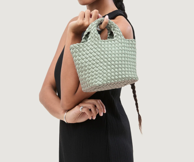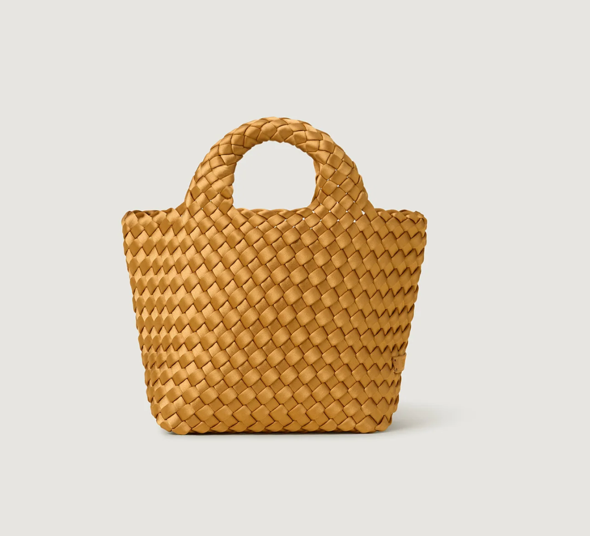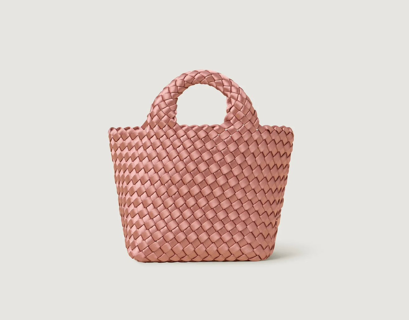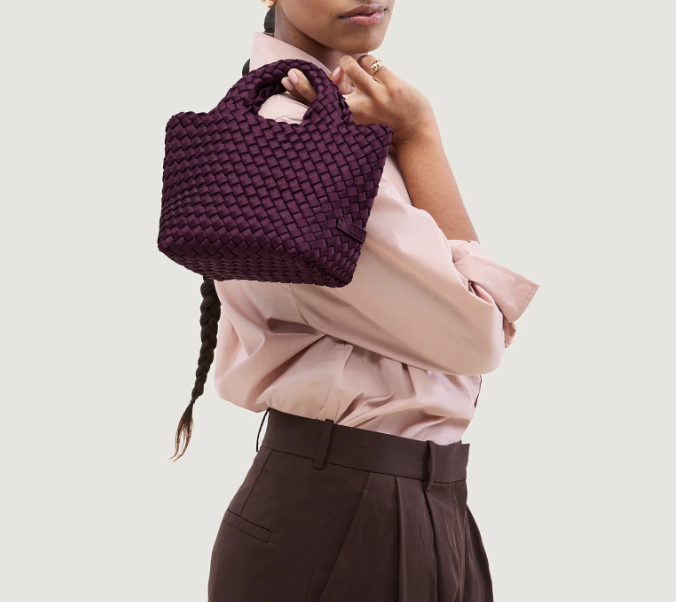 The St. Barths Petit Tote in handwoven deep purple satin is an elegant update to our signature silhouette. New for Holiday ’25, this mini tote brings shine and texture to your day-to-night style—perfect as a holiday party bag or chic evening handbag. Matching satin zippered pouch included.