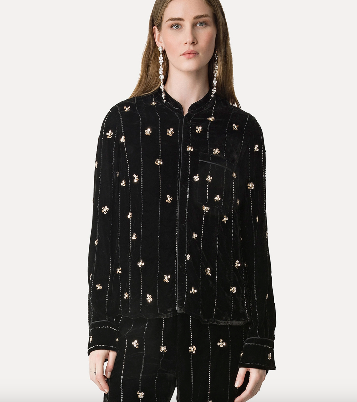 ff "petites etoiles" embroidery velvet pajama shirt 14352_my shirt