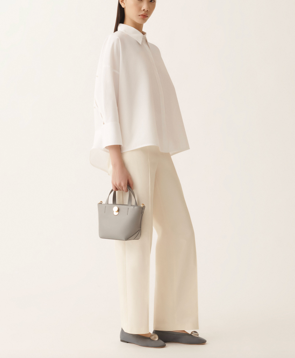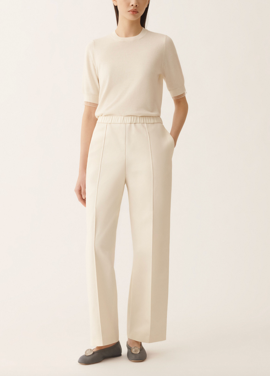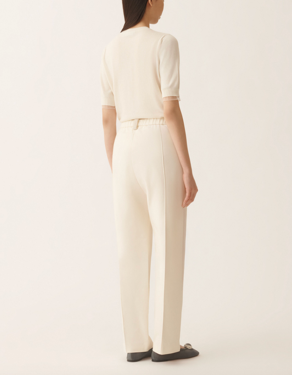 Jogging pants in sustainable cotton gabardine, distinguished by front stitching highlighted with an elegant filo diamante. A design that blends comfort with sophisticated elegance, entirely made in Italy using sustainable processes.