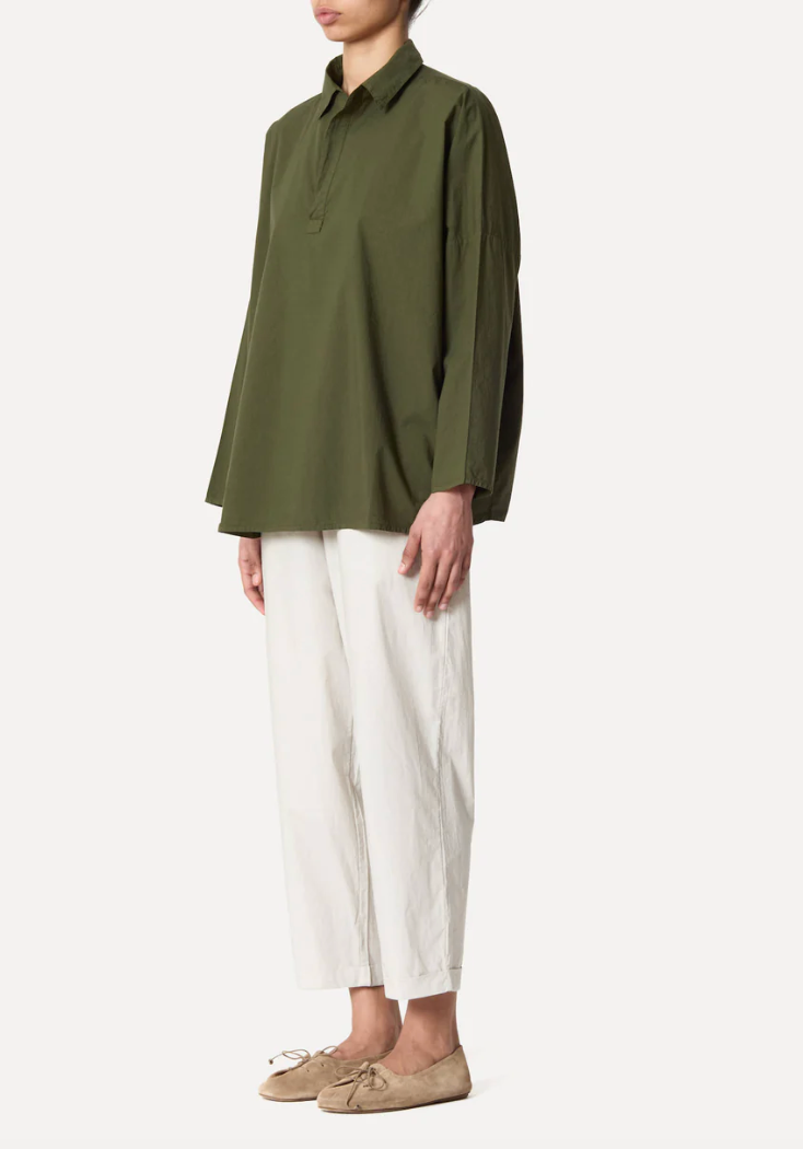 BLOUSE WITH LONG SLEEVES, AND V-NECKLINE IN LIGHT-WEIGHT COTTON POPLIN