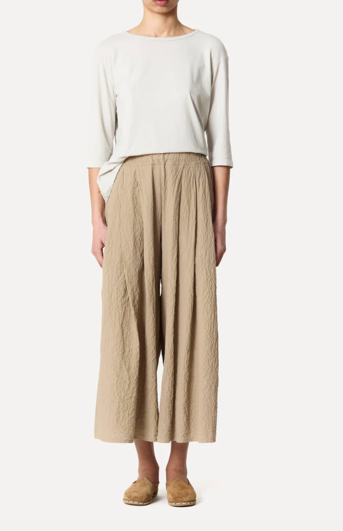 CROPPED PLEATED PANTS IN WRINKLED PLAIN WAVE